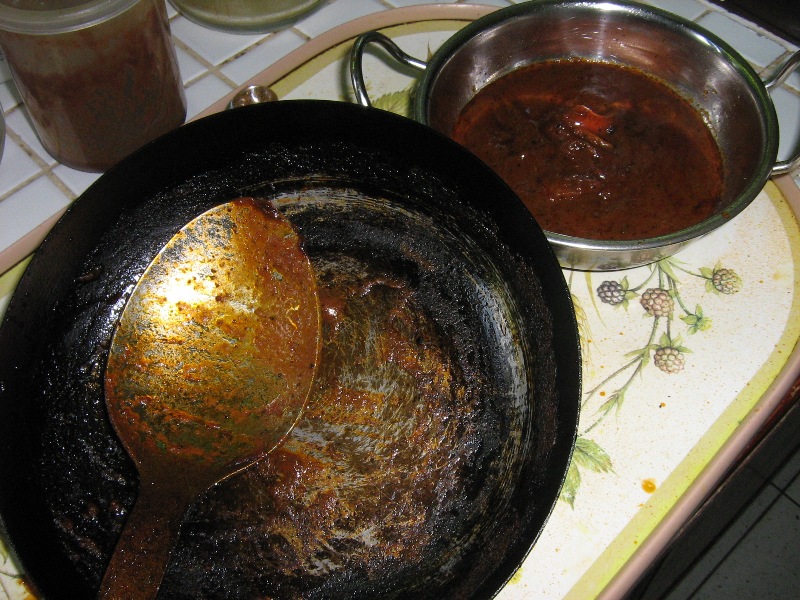 I recently made a curry in my local t/a but the Chef made my Mrs Chicken Madras first and following the completion of her Curry he placed the pan on a second gas ring on high simmer and this was left for about 2 - 3 mins without stirring.
